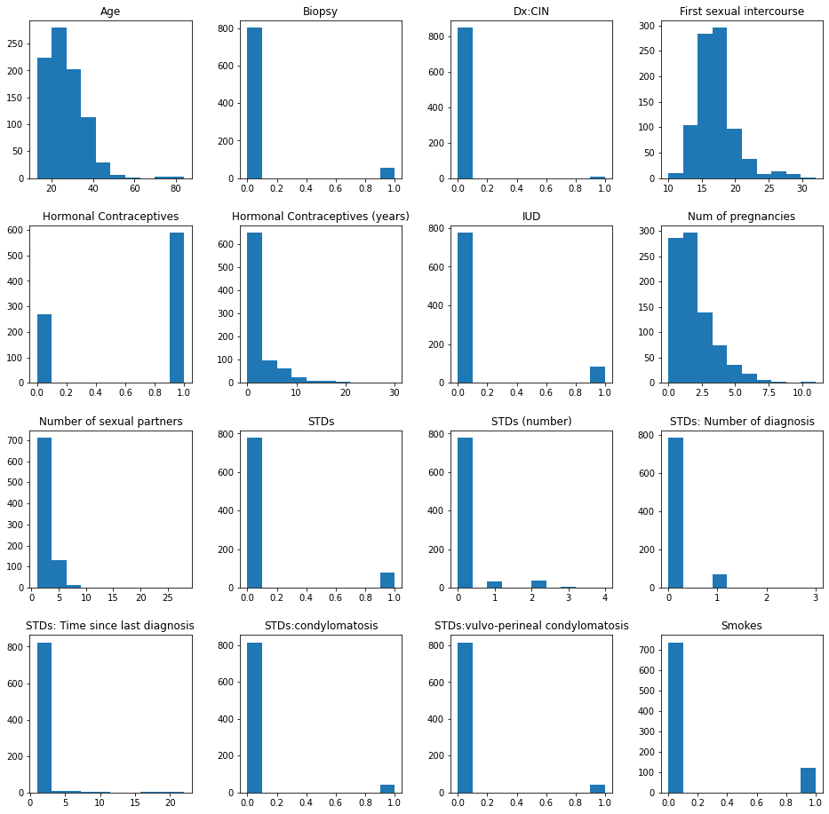 cervdat = df.drop(columns=['Citology', 'Schiller', 'Hinselmann'])