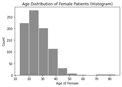 plt.title('Age Distribution of Female Patients (Histogram)')