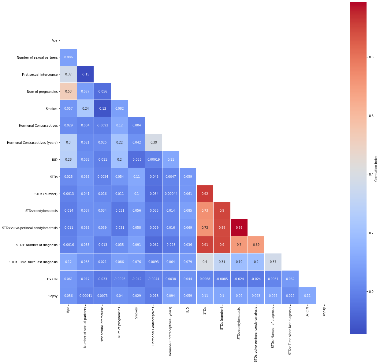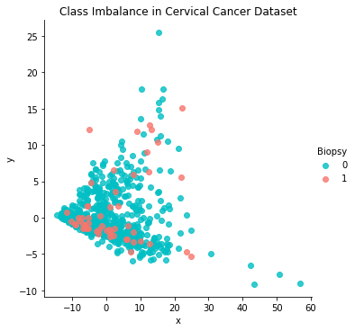 Dua, D., & Graff, C. (2019). UCI Machine Learning Repository [http://archive.ics.uci.edu/ml]. Irvine, CA: University of California, School of Information and Computer Science. https://archive.ics.uci.edu/ml/datasets/Cervical+cancer+%28Risk+Factors%29