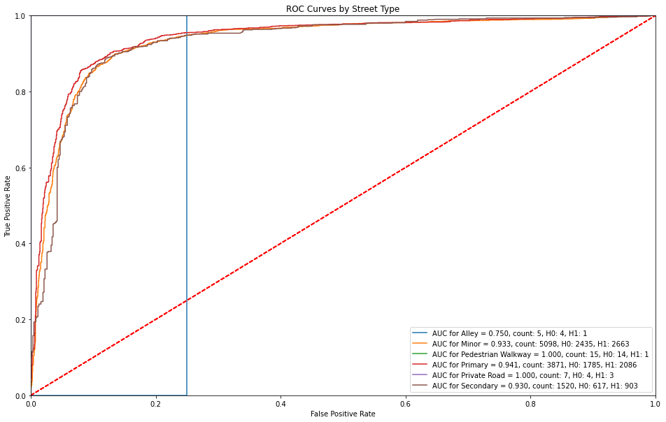 plt.savefig(model_image_path + '/roc_by_street_type.png', bbox_inches='tight')