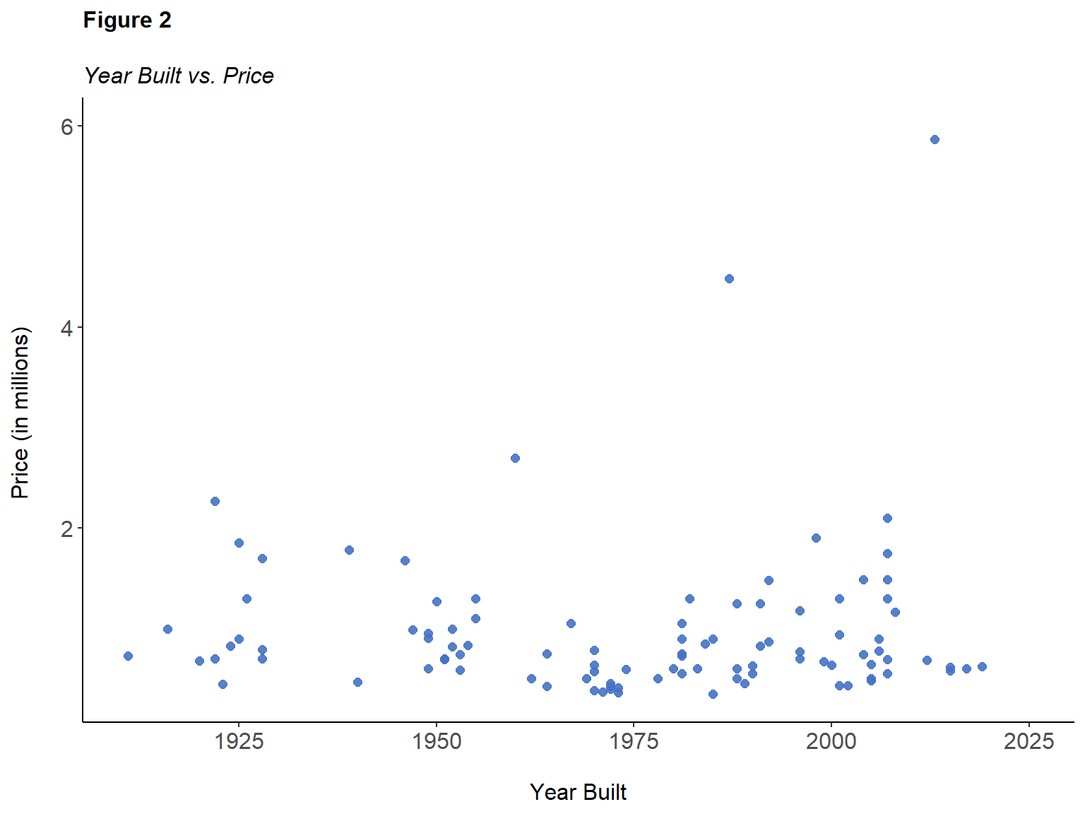 Note. The year built is loosely correlated with price (at best), offering no significant association.